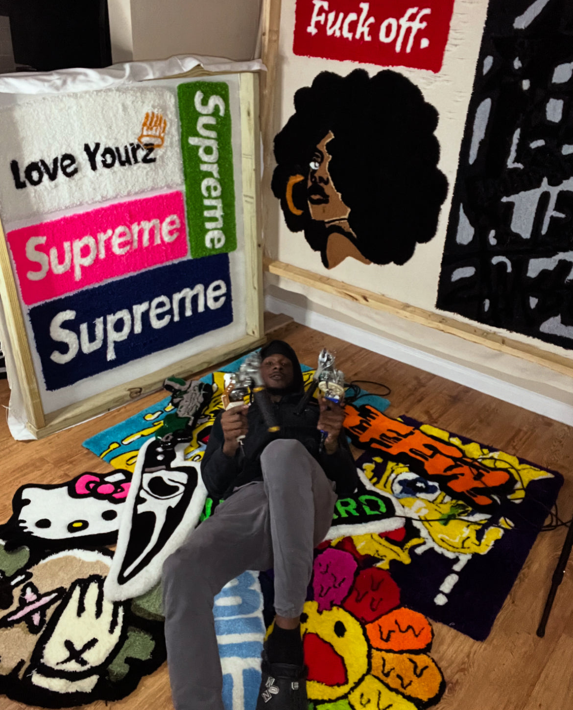 RiskyRugzzz is more than rugs—it’s street culture woven into every thread. From statement pieces to custom creations, we bring bold visions to life. No limits. No rules. Just art.